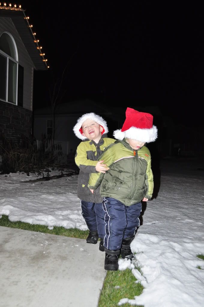 You could not find two happier boys delivering Christmas goodies.  With their help it took twice as long (they had to examine everything on each porch and then peer inside the house to check it out the Christmas trees) but their excitement was contagious.  Kids make everything more fun!