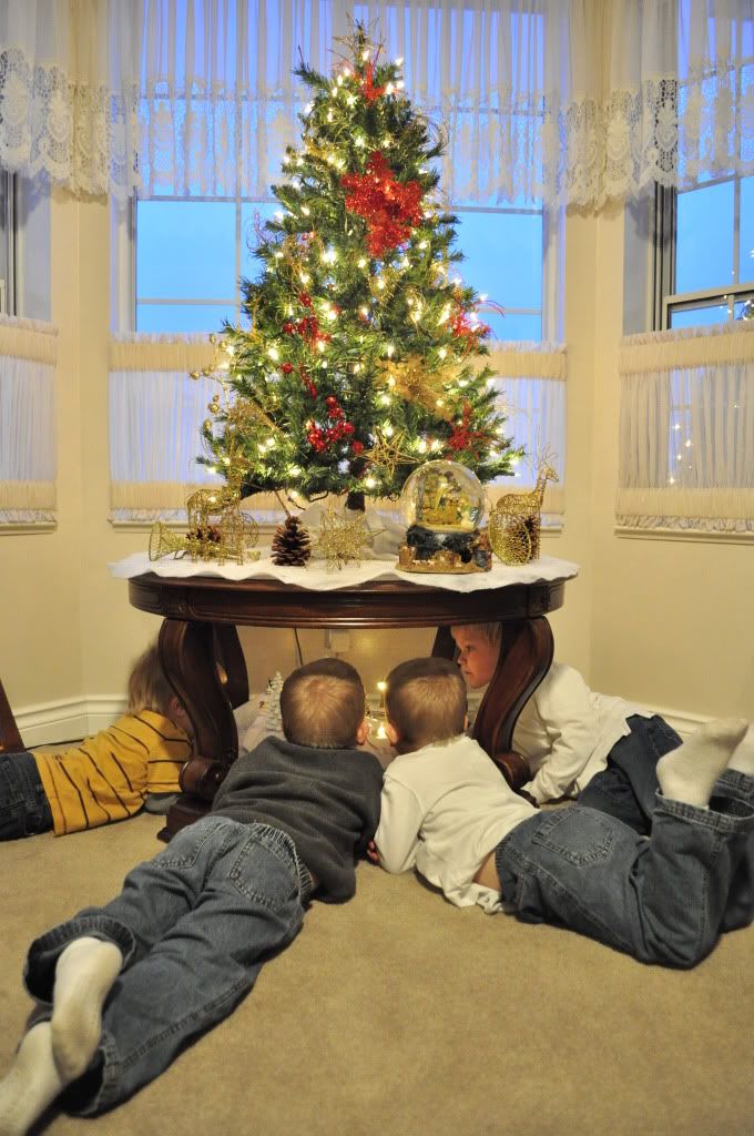 I absolutely love this picture. My boys and their cousins are checking out Great Grandma's automatic ice-skating display that plays music.