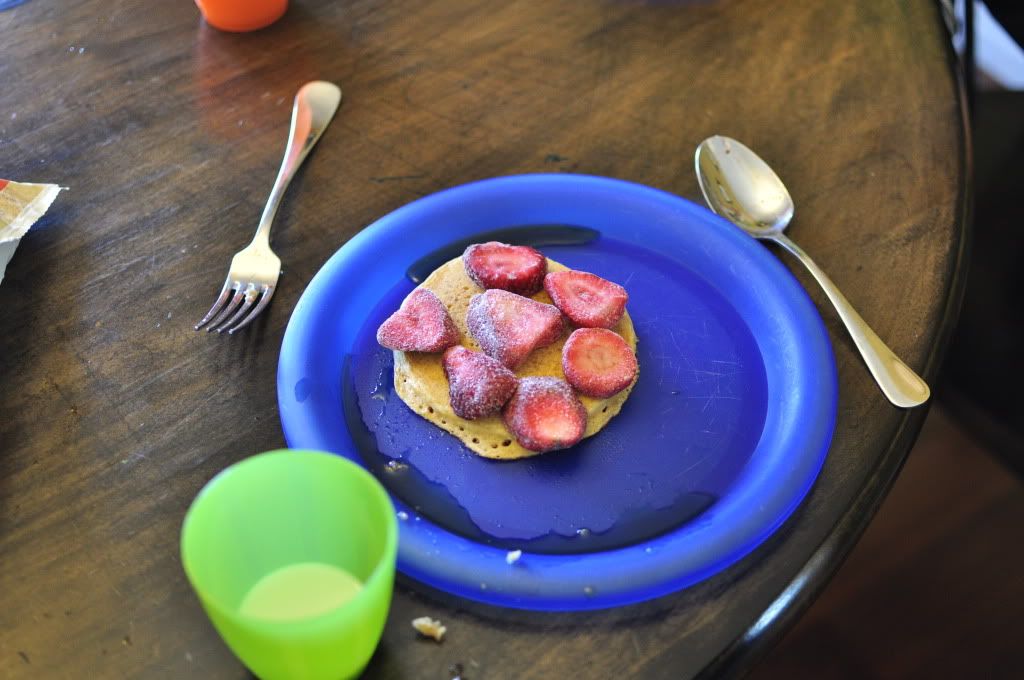 Why my boys like frozen strawberries on their pancakes, 'll never know, but they think it is pretty funny when they make smiley faces.