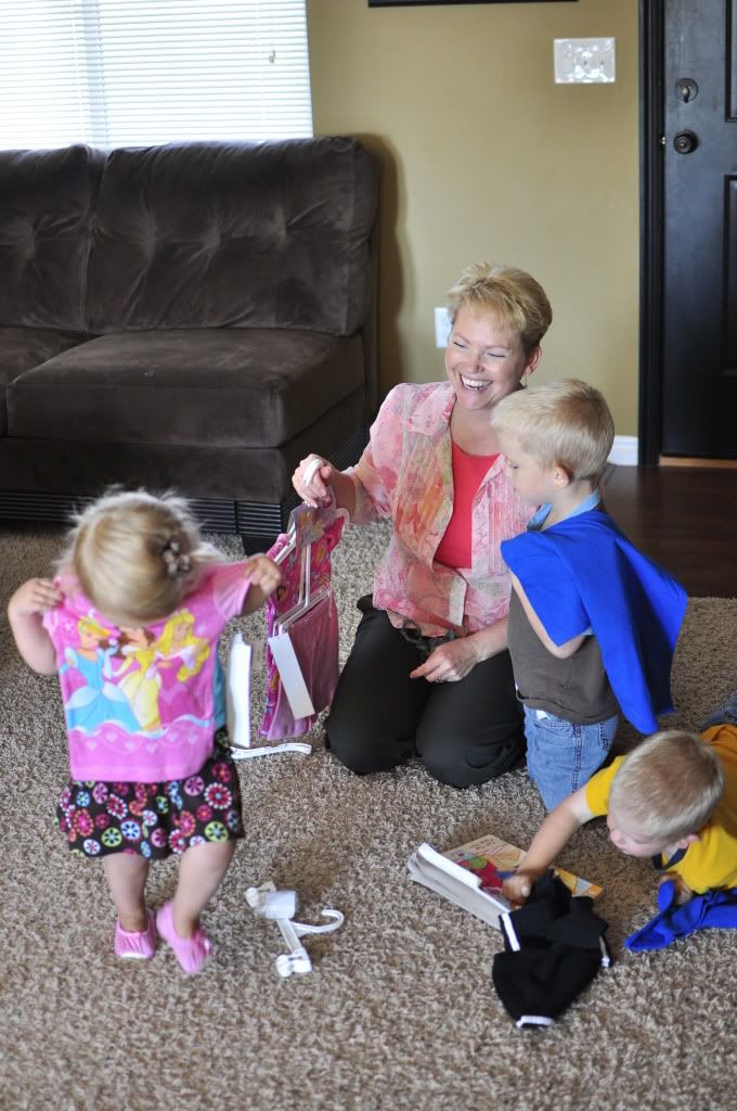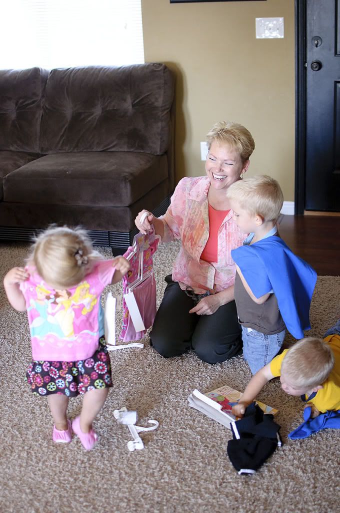 My mom stopped by multiple times last week bearing gifts for the kids.  This time it was new clothes that they were dying over.  Best part of the picture?  My mom's face...her true smile can make anything better!